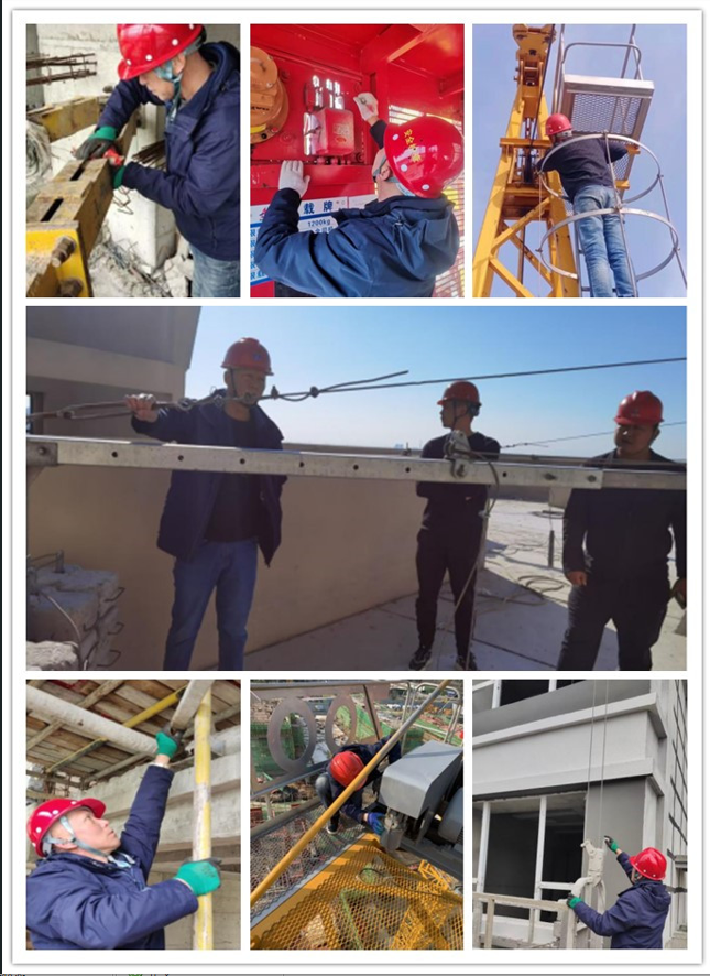 分公司在建項(xiàng)目9個(gè),共有塔吊32臺(tái),施工升降機(jī)32臺(tái),物料提升機(jī)12臺(tái)。本次主要針對(duì)特種設(shè)備的租賃、拆除資質(zhì)情況、合同、方案、人員證件、設(shè)備運(yùn)行情況、維修保養(yǎng)情況、防墜器檢查、整機(jī)檢測、安全防護(hù)設(shè)施以及大型設(shè)備安拆期間的安全教育交底等進(jìn)行專項(xiàng)檢查。并督促項(xiàng)目抓好日常設(shè)備隱患排查,杜絕設(shè)備帶病作業(yè);加強(qiáng)特種作業(yè)人員安全教育培訓(xùn),提高安全意識(shí)和規(guī)范操作意識(shí),杜絕無證上崗操作。專項(xiàng)檢查查出隱患29條,各項(xiàng)目均積極按照“五定”原則落實(shí)整改。