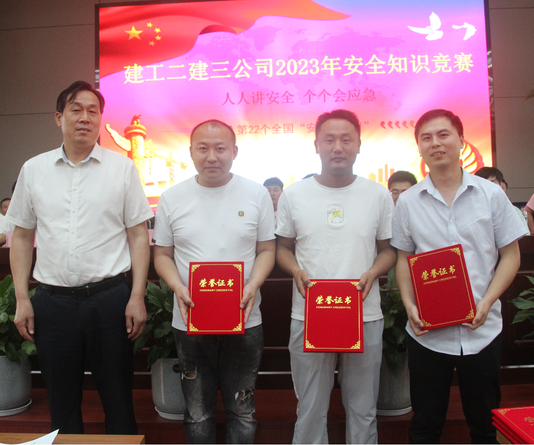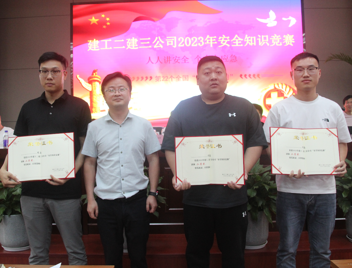 整個(gè)競(jìng)賽過(guò)程氣氛熱烈,賽序井然。選手沉著冷靜、機(jī)智應(yīng)戰(zhàn),既展示了選手們豐富的安全知識(shí)儲(chǔ)備,更體現(xiàn)了公司員工的從業(yè)素養(yǎng)和團(tuán)隊(duì)精神。搶答環(huán)節(jié)把活動(dòng)推向了高潮,賽場(chǎng)氣氛活躍而緊張,選手們?nèi)σ愿?、奮力搶奪,隊(duì)伍比分拉開(kāi)差距。最終,由宿遷中南紫云集項(xiàng)目代表隊(duì)拔得頭籌,銅陵吾悅?cè)A府項(xiàng)目代表隊(duì)獲得第二名,分公司機(jī)關(guān)代表隊(duì)獲得第三名。