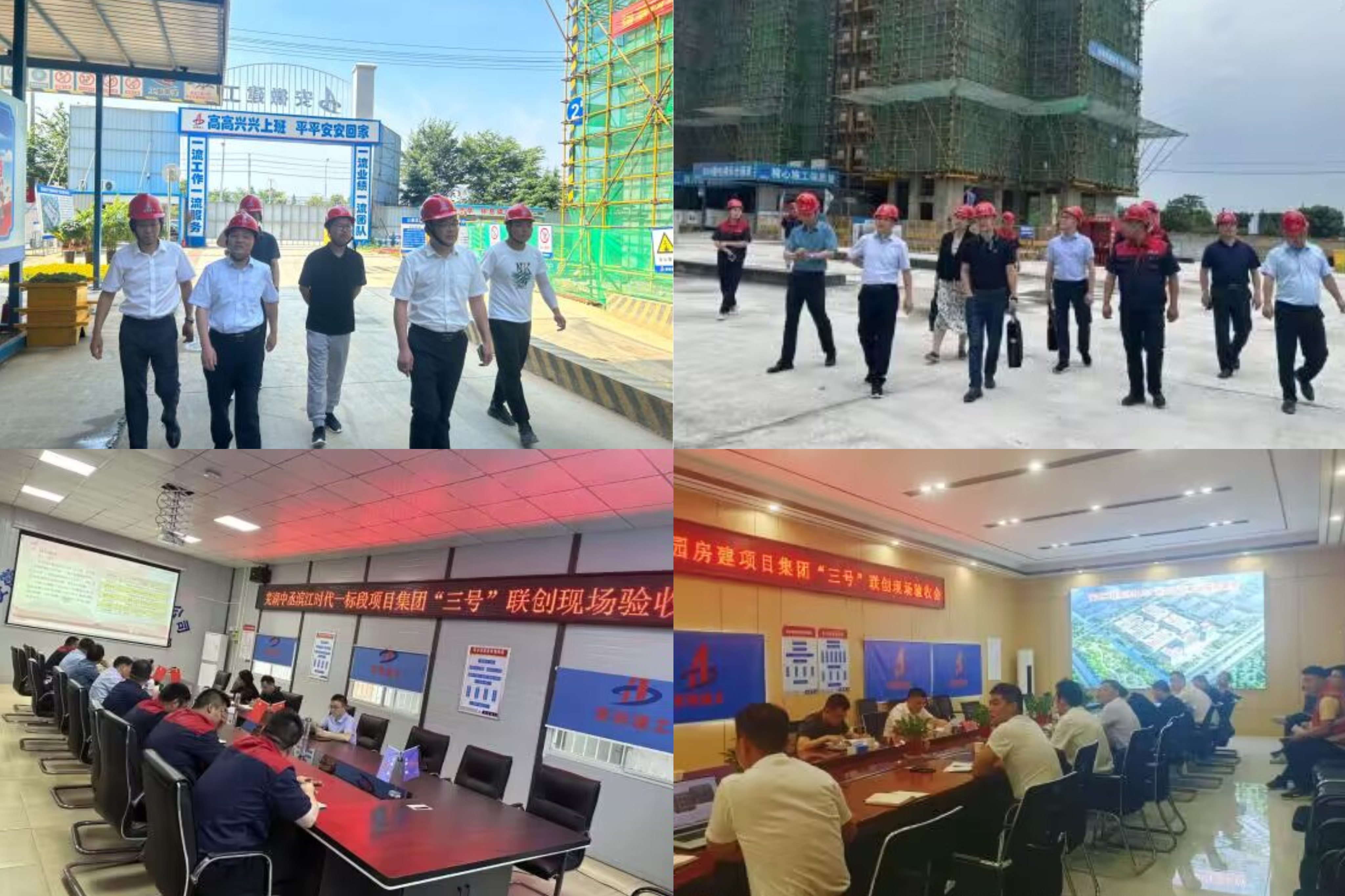 驗(yàn)評組一行深入施工現(xiàn)場,詳細(xì)查看了項(xiàng)目現(xiàn)場安全文明施工、工程質(zhì)量、施工進(jìn)度等情況,聽取了項(xiàng)目部匯報,查閱了項(xiàng)目黨群工作資料。對兩項(xiàng)目的創(chuàng)建成效給予肯定,同時也提出了意見建議。