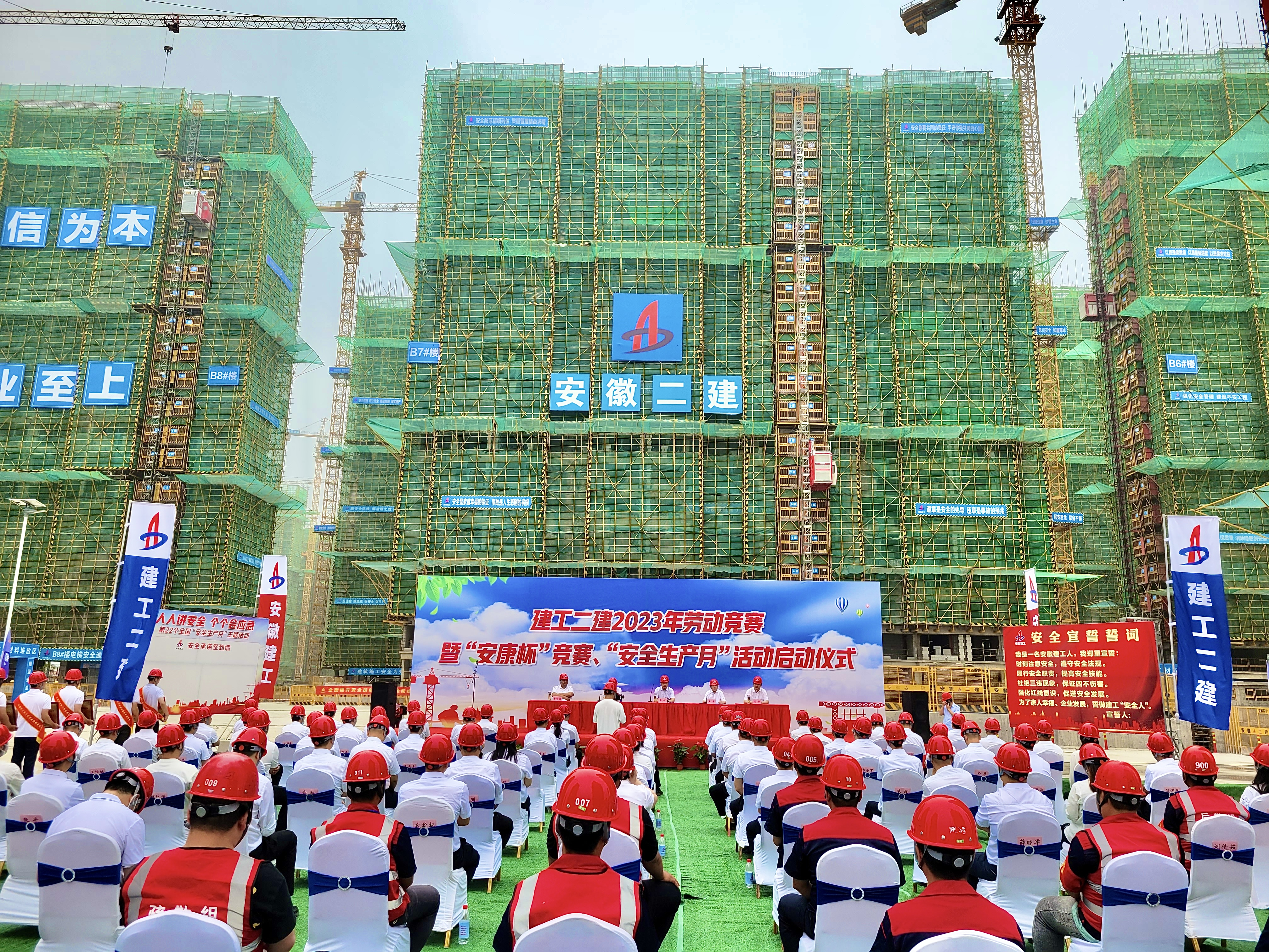 5月30日,建工二建在第五公司蕪湖濱江時代項目舉行2023年度“安全生產月”活動啟動儀式。公司領導班子成員,勞動競賽委員會成員,所屬各單位主要領導,分管安全、生產及質量副經理,工會(副)主席,工管科、安全科科長,公司工會、工程管理部、安全管理部、技術質量部相關人員,受表彰先進集體和個人代表等共百余人參加儀式。隨著啟動儀式的開展,2023年“安全生產月”系列活動的帷幕正式拉開。