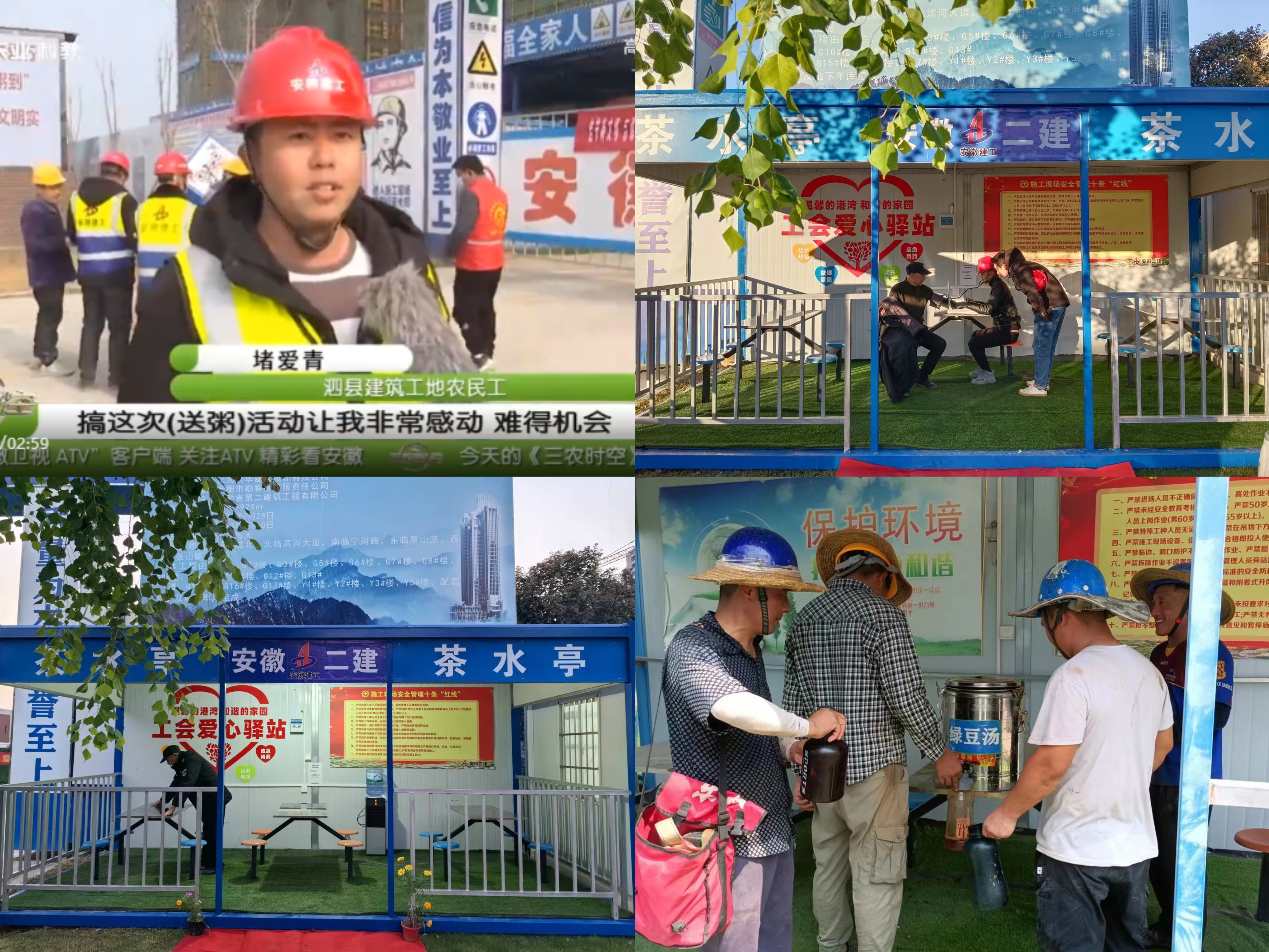 泗縣多金城項目“工會驛站”建設(shè)面積約40平方米,自開工以來,為方便一線工友就餐、休息,設(shè)立了茶水亭、休息室等“工會驛站”,并配備了純凈水、防暑降溫和外傷應(yīng)急藥品、血壓測量儀、充電設(shè)施、免費WiFi、閱讀室等。通過定期組織免費體檢、防暑降溫藥品和飲品發(fā)放、“臘八節(jié)”送粥等公益服務(wù)活動,為一線員工提供了一個溫馨的休憩港灣。