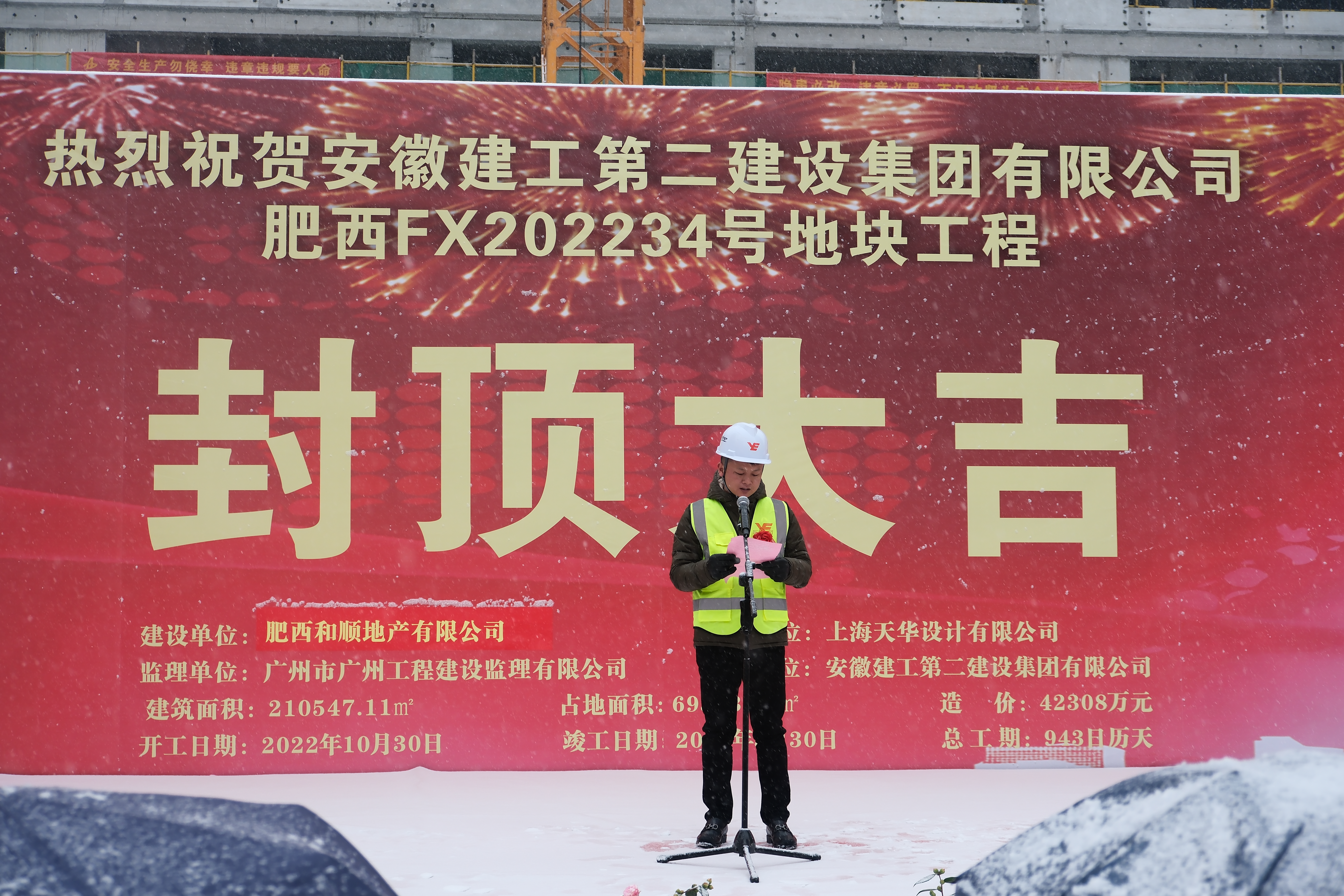 李登祥就項(xiàng)目建設(shè)情況做了簡(jiǎn)要介紹,他表示:和悅云錦項(xiàng)目是安徽建工集團(tuán)首次與央企合作的地產(chǎn)項(xiàng)目,是肥西縣滿(mǎn)分競(jìng)品的高端住宅項(xiàng)目。建設(shè)過(guò)程中,我們克服了種種困境,在各方的關(guān)心支持下,與各參建單位通力協(xié)作,奮力拼搏,有力地保證了整個(gè)工程建設(shè)的穩(wěn)步推進(jìn),確保了洋房主體工程如期順利封頂。我們將以洋房主體封頂為標(biāo)志,再接再厲,繼續(xù)與保利、越秀、和順地產(chǎn)精誠(chéng)合作,以飽滿(mǎn)的熱情、周密的組織、優(yōu)質(zhì)的服務(wù)確保工程進(jìn)度和工程質(zhì)量,如期為業(yè)主奉獻(xiàn)美好家園,打造“優(yōu)質(zhì)工程、平安工程、綠色工程、廉潔工程”,打造央地國(guó)企合作示范新標(biāo)桿。