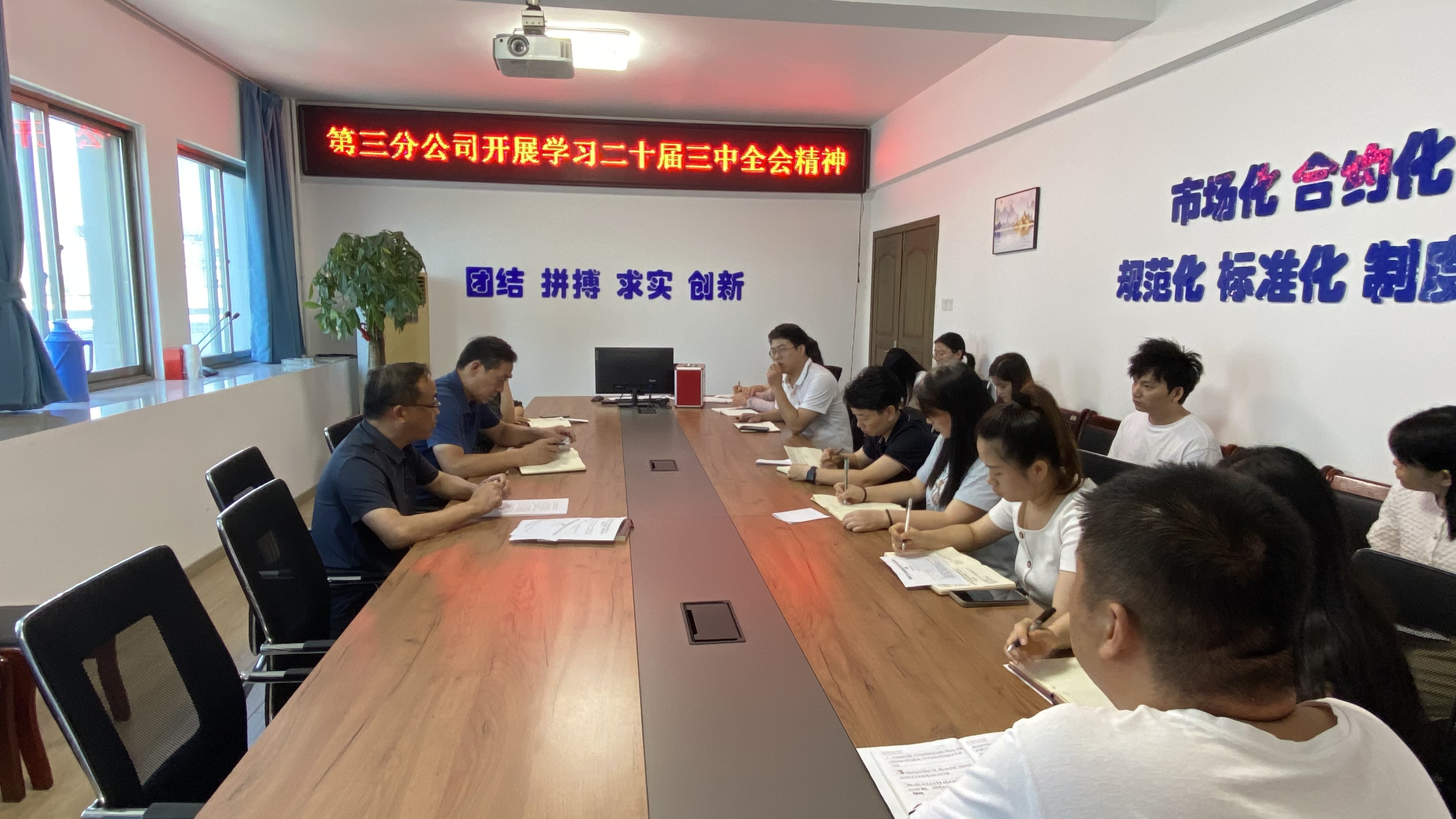 為深入學(xué)習(xí)貫徹黨的二十屆三中全會精神,引導(dǎo)黨員干部準(zhǔn)確領(lǐng)會精神實(shí)質(zhì)。近日,第三分公司黨支部組織召開學(xué)習(xí)黨的二十屆三中全會精神專題會,機(jī)關(guān)全體職工參加學(xué)習(xí)。