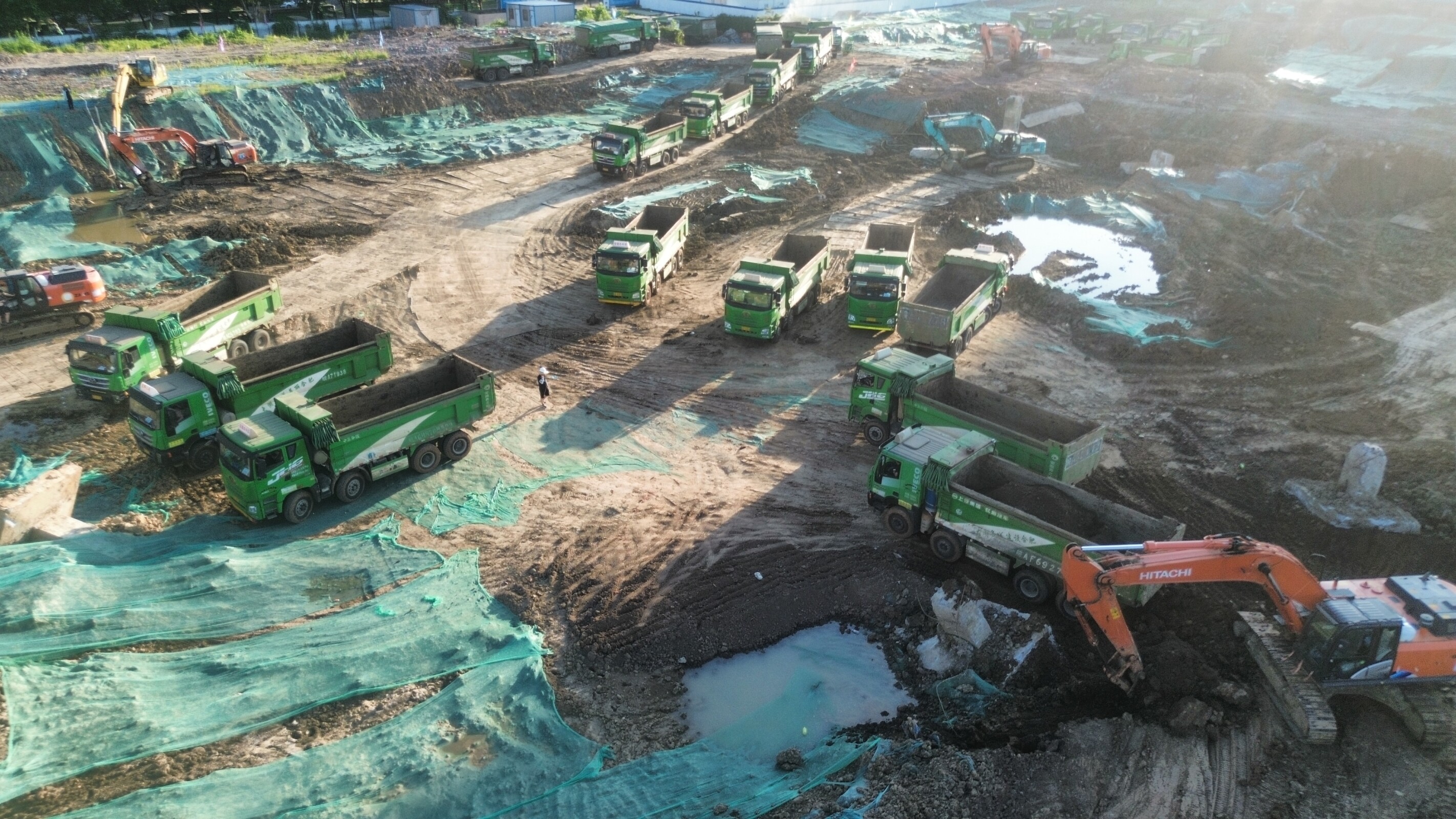 當烈日遇上敬業(yè),當高溫碰上責任,持續(xù)的高溫“烤”驗著堅守在一線人員的意志。入伏以來,氣溫不斷攀升,驕陽如火,項目管理人員克服高溫天氣等不利因素影響,起早貪黑,避開高溫時段,加班加點施工,高標準嚴要求落實每一道工序。截止7月底,一、二標段土方開挖外運累計完成169380m3。