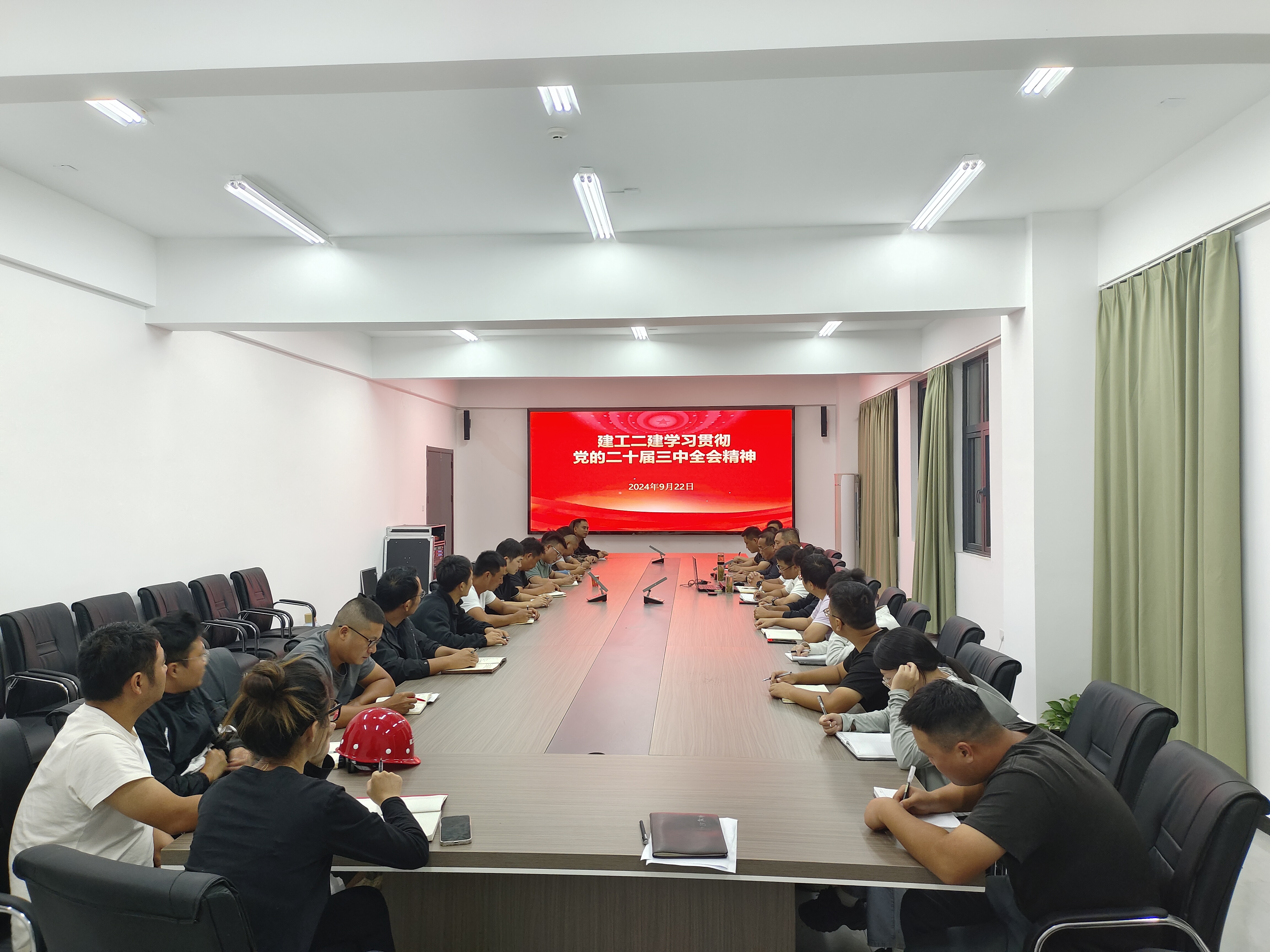 9月22日,建工二建副總經(jīng)理代鵬飛赴蕪湖新材料智能智造產(chǎn)業(yè)園項目宣講黨的二十屆三中全會精神。蕪湖中丞濱江時代項目、安徽建工蕪湖新材料智能智造產(chǎn)業(yè)園項目、安徽路橋鋼結(jié)構(gòu)橋梁制造產(chǎn)業(yè)化基地(蕪湖)項目全體管理人員參加學(xué)習(xí)。