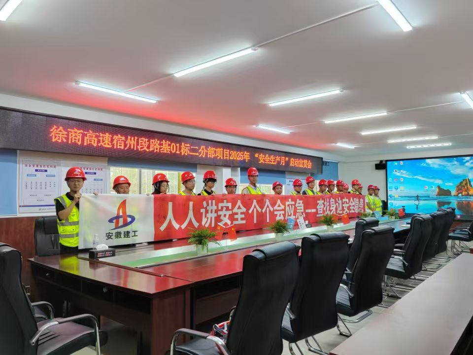 為進一步強化安全生產(chǎn)意識,落實安全生產(chǎn)責任,確保工程建設(shè)期間的人員安全和工程質(zhì)量,近日,S02徐商高速宿州段路基一標二分部在項目駐地舉行了2025年“安全生產(chǎn)月”啟動儀式。