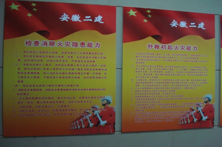 圖為公司辦公樓宣傳欄中的消防知識內(nèi)容