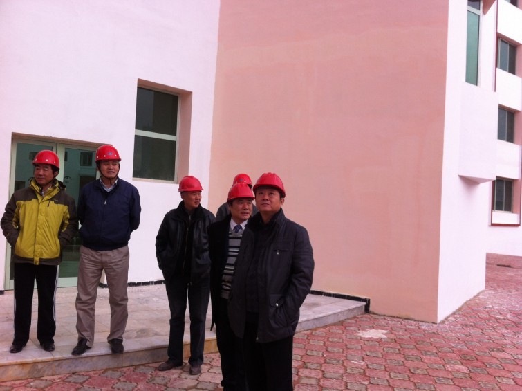 戴總先后實地查看了大學(xué)城1#建筑學(xué)院、9#學(xué)生公寓、10#學(xué)生公寓和18#學(xué)生公寓等四個項目,聽取了項目部工作匯報。戴總肯定了項目部前一階段所取得的成績,對項目部在人員配置不足,面臨重重困難的情況下完成的工作量表示了贊賞。戴總說,此行一是看望慰問項目部廣大干部職工;二是調(diào)整和充實項目部領(lǐng)導(dǎo)班子;三是落實明年4月16日竣工目標的工作安排。戴總強調(diào),康斯坦丁大學(xué)城項目是安徽二建海外項目的關(guān)鍵工程,也是公司新的經(jīng)濟增長點,公司上下對此項目非常重視。目前施工完成總量離阿國竣工要求日期日益接近,但也還存在不足,因此項目部全體職工要認清形勢,要有緊迫感和危機感,在離竣工目標只剩4個月的時間里,迅速掀起大干高潮,加快結(jié)構(gòu)施工進度,狠抓工程收尾和零星附屬工程,質(zhì)量要上臺階,實現(xiàn)工期、質(zhì)量、安全、成本管理四個目標。在抓好施工的同時,還要注意加大人才培養(yǎng)力度,不斷優(yōu)化海外項目部人力資源結(jié)構(gòu),完善人才儲備,為海外未來的發(fā)展奠定堅實的人才基礎(chǔ);培養(yǎng)一批可靠的有實力的施工合作伙伴;進一步探索符合海外特點的項目施工管理經(jīng)驗,向集團和公司交上一份滿意的答卷。