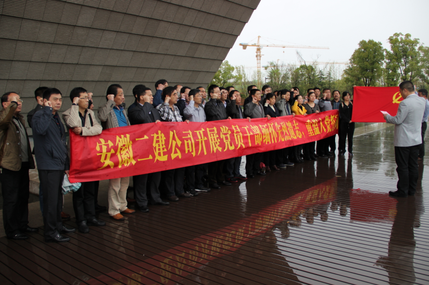 2015年4月2日,安徽二建黨委組織公司全體黨員干部共50人前往濱湖渡江戰(zhàn)役紀(jì)念館,開(kāi)展主題為“黨員干部緬懷先烈遺志,重溫入黨誓詞,廉潔從業(yè)承諾”的教育實(shí)踐活動(dòng)。