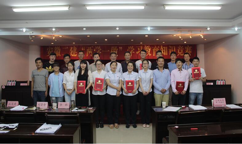 5月30日下午安徽二建公司在三樓會議室開展了一場別開生面的“兩學(xué)一做”主題教育知識競賽。公司黨委書記劉賢奇親臨現(xiàn)場并致辭,各黨支部及團(tuán)支部的近50余人加并觀摩競賽。