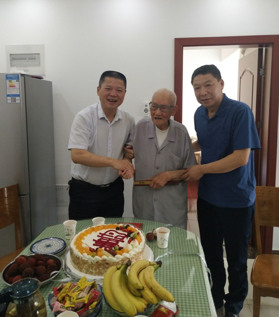 6月15日上午,公司黨委書(shū)記劉賢奇在工會(huì)主席李林、后勤綜合服務(wù)部支部書(shū)記、主管離休工作人員的陪同下,來(lái)到居住在高新區(qū)的離休老干部百歲老人李輝家中,送上生日壽桃蛋糕、慰問(wèn)金和代表公司黨委對(duì)老人的生日祝福,祝愿老人壽比南山,福如東海。李輝,男,1919年7月1日出生,江蘇鹽城人,1945年4月1日參加新四軍抗日隊(duì)伍,1946年4月加入中國(guó)共產(chǎn)黨,出生入死63載,槍林彈雨,對(duì)黨忠誠(chéng),積極工作,勤勤懇懇,對(duì)企業(yè)發(fā)展建設(shè)作出應(yīng)有貢獻(xiàn)。如今老人精神矍鑠,生活安逸,心情愉悅。劉賢奇一邊與老人真摯地交談,了解老人的身體健康狀況、長(zhǎng)壽秘籍;一邊與老人分享中國(guó)改革開(kāi)放翻天覆的變化,安徽二建66載的風(fēng)雨歷程,目前企業(yè)已走向正常發(fā)展軌道,企業(yè)正處于轉(zhuǎn)型發(fā)展的關(guān)鍵時(shí)期,發(fā)展前景越來(lái)越好,希望老人事事順心,天天快樂(lè),益壽延年。老人感謝劉書(shū)記和離休辦同志在自己百歲生日時(shí)給予的祝福,感謝公司黨委關(guān)心呵護(hù),表示要堅(jiān)定信念,永遠(yuǎn)聽(tīng)黨話,跟黨走,祝愿企業(yè)再創(chuàng)新的輝煌。