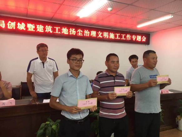 固鎮(zhèn)縣住建局創(chuàng)城暨建筑工地揚塵治理文明施工工作專題會于2019年8月16日在固鎮(zhèn)縣住建局會議室召開,安徽二建五分公司承建的固鎮(zhèn)名邦國際花都項目在在建工地評分中以97分榮獲第二名。