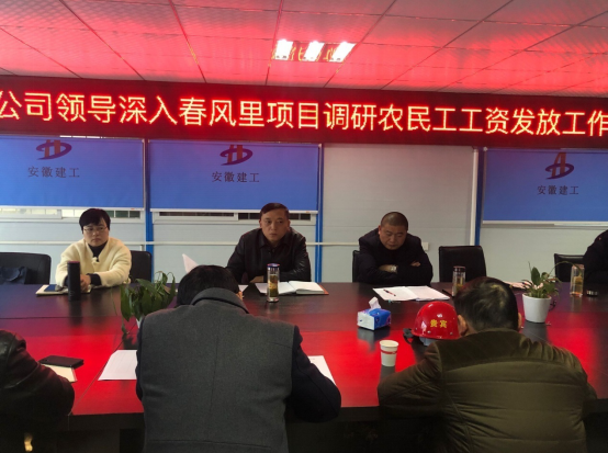 根據(jù)集團(tuán)公司《關(guān)于開展拖欠農(nóng)民工工資專項(xiàng)排查工作的通知》的要求,12月9日,公司黨委副書記、紀(jì)委書記仇多維對(duì)項(xiàng)目的農(nóng)民工工資發(fā)放問題進(jìn)行調(diào)研,信訪保衛(wèi)部、工程管理部、人力資源部相關(guān)人員陪同。