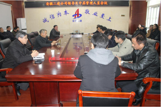 1月14日下午,安徽二建公司召開領(lǐng)導(dǎo)及中層管理人員會議,宣布安徽建工集團控股有限公司關(guān)于安徽二建公司領(lǐng)導(dǎo)班子調(diào)整的決定。建工控股黨委工作部部長、建工股份黨委副書記徐文聯(lián)出席會議,公司領(lǐng)導(dǎo)班子、機關(guān)部門負(fù)責(zé)人、分公司黨政主要領(lǐng)導(dǎo)參會。