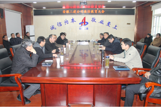 1月14日,安徽二建公司召開廉潔教育大會(huì),公司領(lǐng)導(dǎo)班子成員以及中層管理人員參加會(huì)議,黨委副書記、紀(jì)委書記仇多維主持會(huì)議。