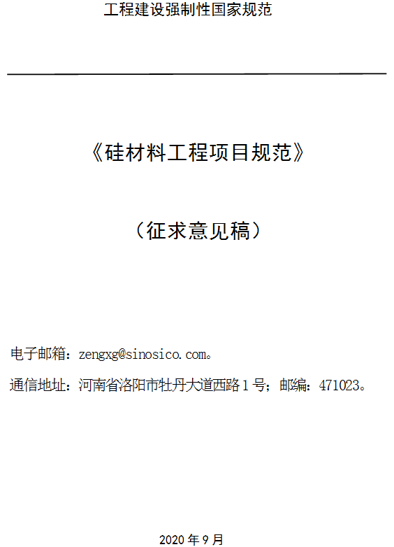 《硅材料工程項(xiàng)目規(guī)范(征求意見稿)》