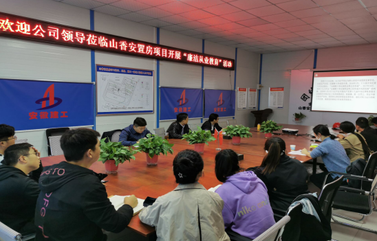 11月18日下午,公司黨委副書記、紀(jì)委書記仇多維帶領(lǐng)黨工部、工會、紀(jì)檢監(jiān)察室機(jī)關(guān)人員赴蚌埠山香安置房EPC項(xiàng)目開展廉潔從業(yè)教育。