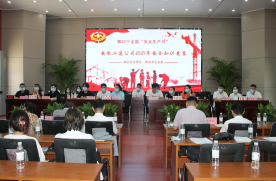 在全國(guó)第20個(gè)“安全生產(chǎn)月”到來(lái)之際。為了營(yíng)造濃厚的安全生產(chǎn)氛圍,人人講安全、人人重視安全。6月7日下午,在安徽二建公司新會(huì)議室舉行以“落實(shí)安全責(zé)任,推動(dòng)安全發(fā)展”為主題的安全知識(shí)競(jìng)賽。公司黨委副書(shū)記、紀(jì)委書(shū)記仇多維,副總經(jīng)理葉和永,安全總監(jiān)、安全管理部主任曹建,黨委工作部主任施用宏,工會(huì)副主席、女工主任王俊出席活動(dòng)并擔(dān)任評(píng)委。14支代表隊(duì)及領(lǐng)隊(duì)共120多人參加。