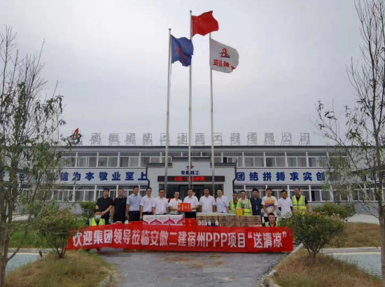 8月10日,建工控股黨委委員、紀(jì)委書記王汪苗一行赴宿州三館一院一中心及應(yīng)用技術(shù)學(xué)校項(xiàng)目開(kāi)展送清涼活動(dòng),發(fā)放防暑降溫物品,看望、慰問(wèn)奮戰(zhàn)在勞動(dòng)競(jìng)賽一線的項(xiàng)目職工。
