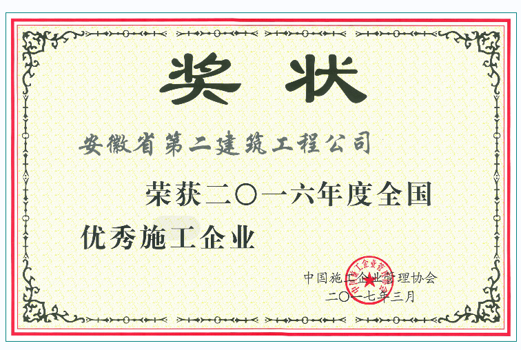 全國(guó)優(yōu)秀施工企業(yè)(2016年度)