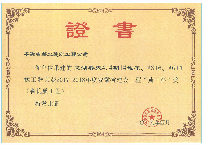 黃山杯(龍湖春天4.4期1#地庫(kù)、AS16、AG1#樓)
