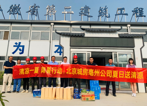 艷陽高照,晴空萬里。6月11日,北京城房亳州負(fù)責(zé)人刁東良一行蒞臨安徽二建公司亳州濱江壹號項(xiàng)目部送清涼。