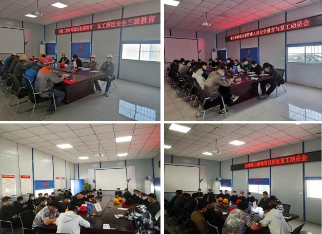 2月19日,項目召開班組復(fù)工復(fù)產(chǎn)動員會,并對返崗的項目管理人員、勞務(wù)人員進行三級安全教育。