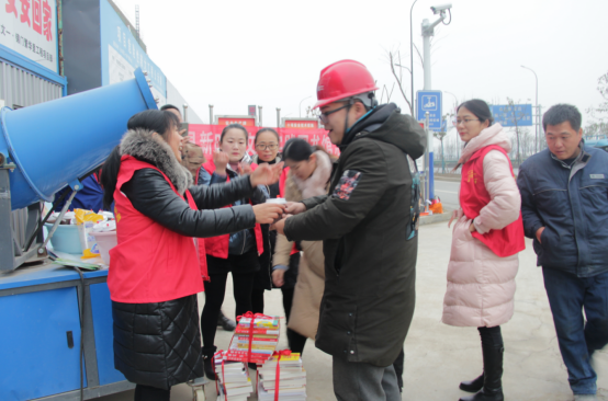 活動現(xiàn)場,項(xiàng)目部成員與志愿者們在錦門·繁華里工地門口支起愛心粥鋪,把一碗碗香暖四溢的臘八粥送到每一位民工手上,讓大家能夠在寒冷的冬季感受到社會的溫暖,體會到了社會各界對民工朋友們的關(guān)愛,送粥的同時,志愿者們還給民工朋友們送上各類書籍,讓民工朋友們也享受到閱讀的樂趣。