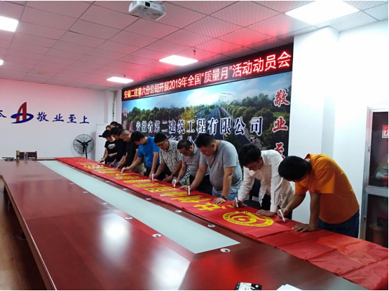 為認(rèn)真落實(shí)安徽建工集團(tuán)股份有限公司關(guān)于開(kāi)展2019年“質(zhì)量月”活動(dòng)的通知,9月3日,第六分公司召開(kāi)2019年“質(zhì)量月”活動(dòng)專題會(huì)進(jìn)行宣貫,組織職工進(jìn)行橫幅簽名活動(dòng),以“共創(chuàng)中國(guó)質(zhì)量 建設(shè)質(zhì)量強(qiáng)國(guó)”為主題,大力營(yíng)造“人人重視高質(zhì)量,人人創(chuàng)造高質(zhì)量,人人享受高質(zhì)量”的良好氛圍,進(jìn)一步規(guī)范質(zhì)量安全行為,提高質(zhì)量安全管理水平,全面提升項(xiàng)目管理水平,要求項(xiàng)目部按照“質(zhì)量月”活動(dòng)內(nèi)容,結(jié)合項(xiàng)目實(shí)際,精心安排、周密部署,以“質(zhì)量月”活動(dòng)為契機(jī),加大項(xiàng)目質(zhì)量宣傳力度,進(jìn)一步提高全員質(zhì)量意識(shí),開(kāi)展質(zhì)量示范創(chuàng)建,創(chuàng)建公司質(zhì)量品牌,牢固樹(shù)立全心全意為用戶提供優(yōu)質(zhì)服務(wù)的安徽建工一流企業(yè)現(xiàn)象。
