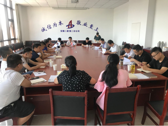 8月30日,二分公司召開8月份生產(chǎn)工作例會暨“大干一百天”勞動競賽動員會,分公司領(lǐng)導(dǎo)、各科室負責人及項目部負責人等20余人參加會議。