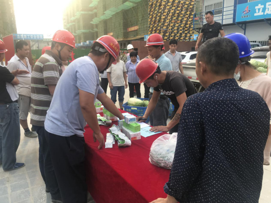 為貫徹落實(shí)好公司2019年夏日“送清涼”活動(dòng),傳遞公司及項(xiàng)目部對(duì)一線工人的關(guān)愛,7月15日下午,臨泉匯鑫·悅瀾灣一期B標(biāo)段項(xiàng)目部開展“送清涼”活動(dòng),在項(xiàng)目管理人員的組織下,將購置的西瓜、綠豆、藿香正氣液、仁丹等防暑用品全部發(fā)放到現(xiàn)場一線工人的手中,表達(dá)了公司和項(xiàng)目部關(guān)心、體恤一線工人的濃濃情意,也給炎炎夏日帶來一絲愜意、一縷清涼!