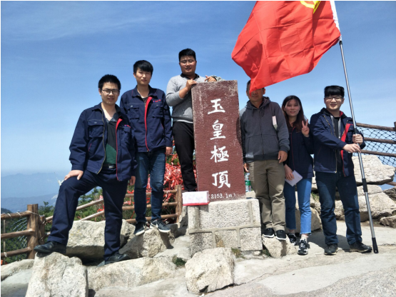 登山小隊(duì)在團(tuán)旗的引領(lǐng)下,從堯山腳下向玉皇山頂進(jìn)發(fā)。登山途中,大家一邊欣賞美麗的風(fēng)景,盡情享受新鮮的空氣和明媚的陽(yáng)光,一邊聊天,暢談著戶外活動(dòng)的愉悅感受。經(jīng)過近兩個(gè)小時(shí)的奮進(jìn),在不斷的互相勉勵(lì)、加油鼓勁下,登上了峰頂,并合影留住這美好的瞬間。