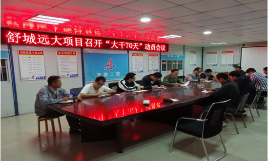 10日晚,為了響應(yīng)公司組織勞動(dòng)競賽的號(hào)召,激發(fā)項(xiàng)目上下的生產(chǎn)熱情,達(dá)到并超越既定的生產(chǎn)目標(biāo),舒城遠(yuǎn)大項(xiàng)目部全體管理人員在會(huì)議室召開“大干70天”勞動(dòng)競賽動(dòng)員會(huì)議。
