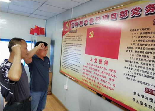 7月1日上午,項(xiàng)目部?jī)晌稽h員緊握右拳,面向鮮紅黨旗,重溫入黨誓詞。回顧入黨宣誓時(shí)的莊嚴(yán)承諾和堅(jiān)定決心,增強(qiáng)黨性意識(shí),以更加飽滿的熱情發(fā)揮共產(chǎn)黨員的先鋒模范作用,永葆共產(chǎn)黨的政治本色。項(xiàng)目部19名成員抒寫了“我的承諾”,將一腔熱血鐫刻在紅色信紙上,并莊嚴(yán)鄭重的張貼上了宣傳欄,接受同志監(jiān)督,時(shí)刻提醒自己。不忘初心,立足崗位,提質(zhì)降本增效,以實(shí)際行動(dòng)向七•一獻(xiàn)禮。