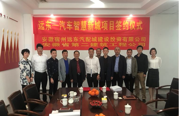 4月18日下午,安徽宿州遠(yuǎn)東汽配城建設(shè)投資有限公司與安徽二建公司就 “遠(yuǎn)東汽車智慧新城”項(xiàng)目在宿州舉行簽約儀式。安徽宿州遠(yuǎn)東汽配城建設(shè)投資有限公司董事長朱成野、執(zhí)行董事徐子平、總經(jīng)理鄭志強(qiáng),公司副總經(jīng)理葉和永、安裝公司副經(jīng)理朱楊杰,以及相關(guān)人員等出席簽約儀式。