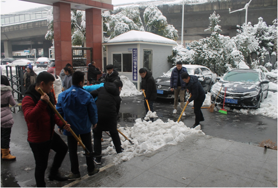 1月4日以來,我市出現(xiàn)了入冬以來范圍最大、強(qiáng)度最強(qiáng)的降雪過程。雪花飛舞,雪景雖美,但大范圍、高強(qiáng)度的降雪也給人們的交通出行和生產(chǎn)生活帶來諸多不便。1月5日早晨,安徽二建機(jī)關(guān)黨支部組織黨員同志20多人開展義務(wù)掃雪活動(dòng)。黨員同志們除了各掃自家門前雪,更管他人瓦上霜。除了清掃機(jī)關(guān)大院、公司門口的積雪外,大家還主動(dòng)清掃裕溪路主干道的路面積雪,清除被積雪壓斷的行道樹。風(fēng)雪中,公司黨員同志們拿著鐵鍬和掃帚清掃積雪,天氣雖然寒冷,但是大家干勁十足,邊鏟邊掃,不一會(huì)兒的工夫,就清理出來一大片路面,為職工群眾安全出入提供保障。大家一邊掃雪,一邊提醒過往居民和車輛“小心路滑,慢點(diǎn)走,注意安全”。熱火朝天的干勁感染了廣大團(tuán)員青年,許多年輕人積極加入勞動(dòng)隊(duì)伍。