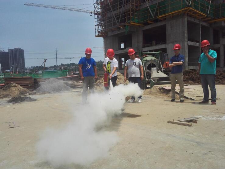 安全宣誓儀式結束后,費經理部署了應急救援預案演練活動。在總指揮王歡的帶領下,按照項目部應急預案內容,依次模擬了火災、觸電等事故的演練。全體成員服從指揮、團結一致、協調分工,出色的完成了各項應急救援演練內容,不僅進一步熟悉了應急救援方案,提高了對安全事故的反應速度,更進一步清楚了安全事故發(fā)生的突然性,提高了自身的警覺性。