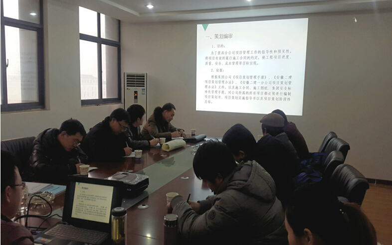 會(huì)議主要通過ppt形式就策劃編審、施組、方案編審、項(xiàng)目技術(shù)質(zhì)量考核、新開工項(xiàng)目告知等內(nèi)容進(jìn)行解讀,集中學(xué)習(xí)了公司及分公司項(xiàng)目管理、質(zhì)量控制、重難點(diǎn)攻關(guān)、冬季施工等相關(guān)文件。