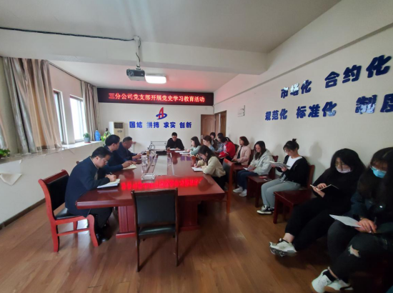 三分公司黨支部開展黨史學(xué)習(xí)教育活動(dòng),分公司機(jī)關(guān)全體人員參加,活動(dòng)由支部書記陳習(xí)武主持。首先,陳習(xí)武帶領(lǐng)大家學(xué)習(xí)了二建黨發(fā)【2021】13號(hào)文《安徽二建公司黨委關(guān)于開展黨史學(xué)習(xí)教育的工作方案》,并就分公司黨支部的黨史學(xué)習(xí)教育活動(dòng)做了詳細(xì)安排部署,要求全體黨員干部把思想和行動(dòng)統(tǒng)一到集團(tuán)、公司黨委的決策部署上來,高標(biāo)準(zhǔn)、高質(zhì)量完成黨史學(xué)習(xí)教育各項(xiàng)任務(wù),努力做到學(xué)史明理、學(xué)史增信、學(xué)史崇德、學(xué)史力行,以優(yōu)異成績(jī)迎接建黨100周年。隨后,陳習(xí)武帶領(lǐng)大家上了一堂生動(dòng)的黨史課?!皬纳虾J瘞扉T到嘉興南湖,一艘小小紅船承載著人民的重托、民族的希望,越過急流險(xiǎn)灘,穿過驚濤駭浪,成為領(lǐng)航中國行穩(wěn)致遠(yuǎn)的巍巍巨輪?!?。通過視頻和講解相結(jié)合,為大家敘述了從中國共產(chǎn)黨成立到建立新中國,28年間,黨召開了一次次重要會(huì)議。這些會(huì)議作出的決策,指引了中國革命的方向,推動(dòng)了歷史進(jìn)程,具有里程碑意義。大家紛紛表示,將從黨史中汲取智慧和力量,堅(jiān)定信仰信念,進(jìn)一步提高黨性修養(yǎng),不忘初心,以實(shí)際行動(dòng)發(fā)揮好黨員干部的模范帶頭作用,積極投入到干事創(chuàng)業(yè)中去,為分公司的發(fā)展添磚加瓦。