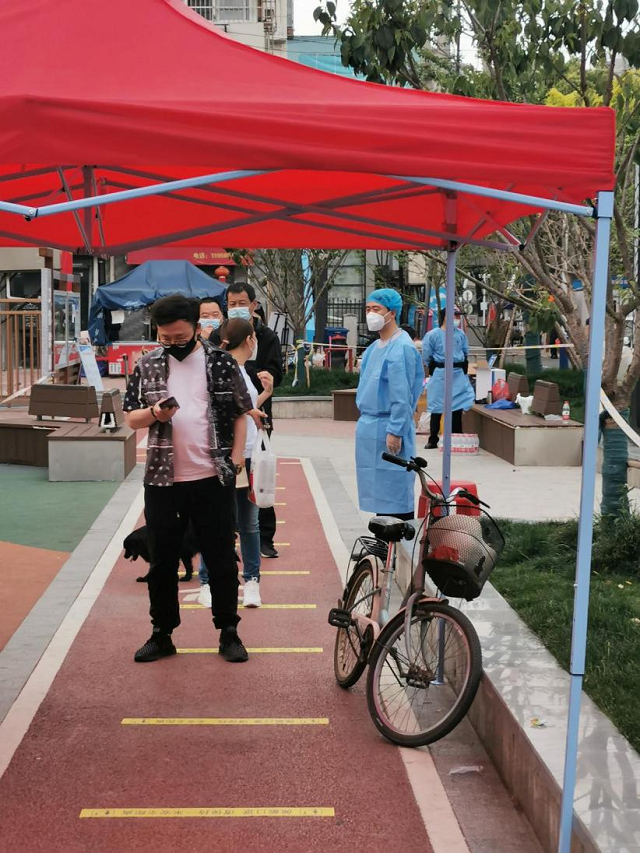 “雖然我們是預(yù)備黨員,但行動上一直以正式黨員的標準嚴格要求自己”他們是這么說的,也是這么做的。服務(wù)期間,他們認真維持現(xiàn)場秩序,引導(dǎo)小區(qū)人員有序排隊,發(fā)放核酸檢測完成小卡片,給不方便的老人上門檢測登記等。