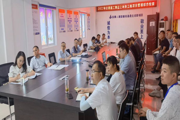 為扎實(shí)推進(jìn)“項(xiàng)目基礎(chǔ)管理年”活動,以檢查促落實(shí)、促整改、促提升,2022年6月28日,建工股份公司工程管理部(安全監(jiān)察局)督查員范毓慶一行8人赴安徽二建固鎮(zhèn)拓基鼎元名邸項(xiàng)目,開展上半年工程項(xiàng)目管理綜合檢查工作。安徽二建公司黨委委員、副總經(jīng)理葉和永,總經(jīng)理助理、第一分公司經(jīng)理崔書斌及公司相關(guān)職能部門負(fù)責(zé)人參加。