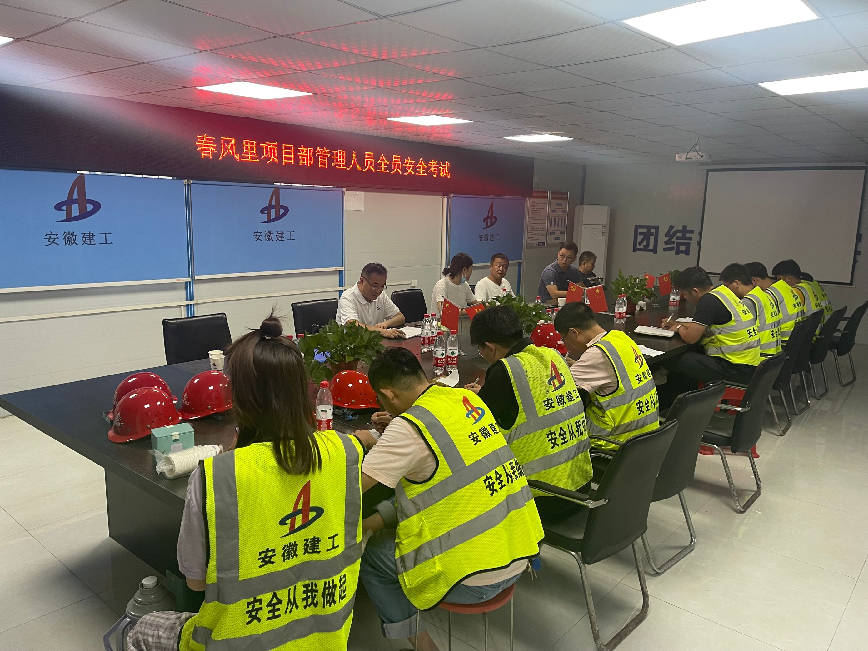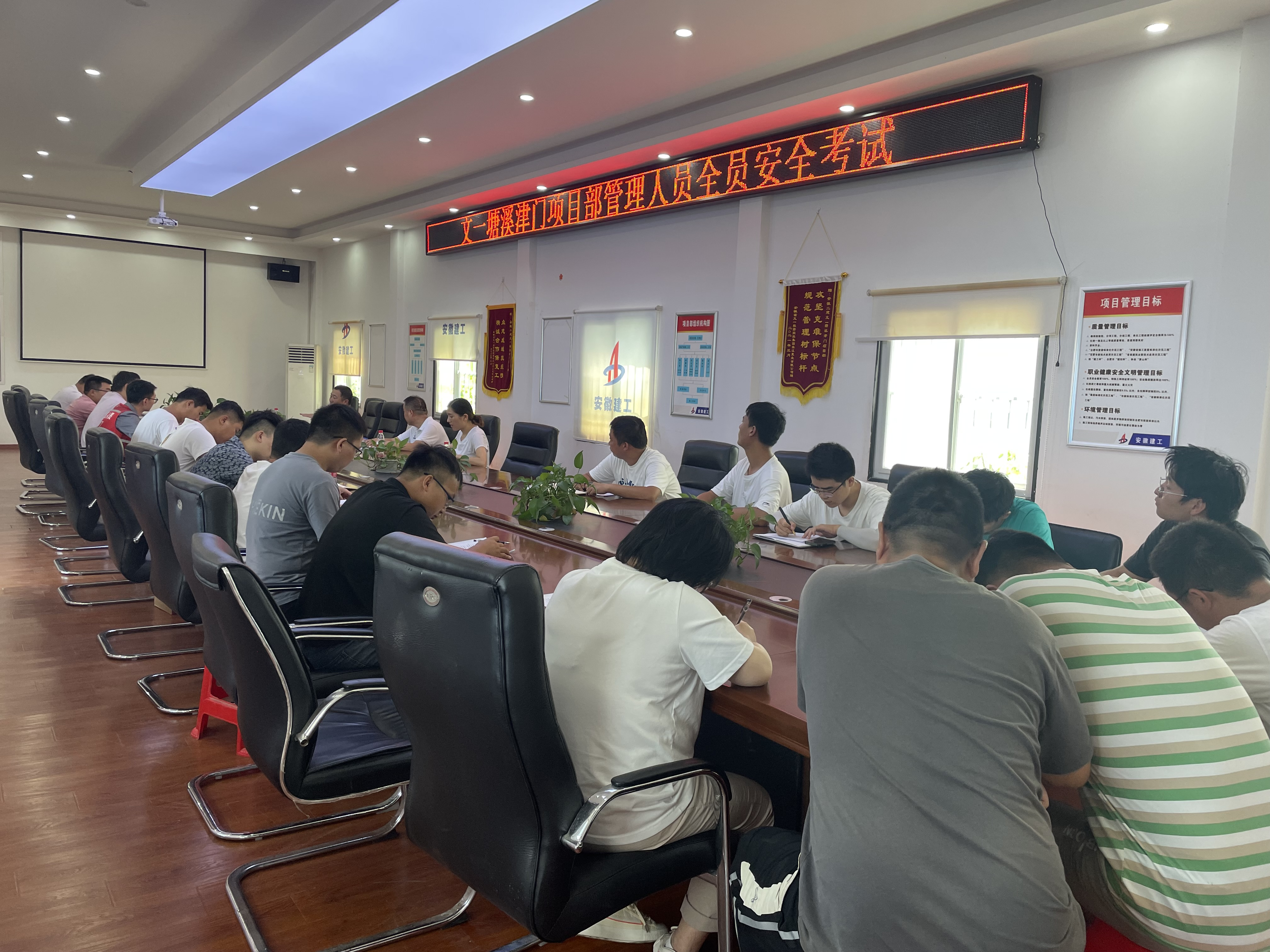 檢查組首先對(duì)施工現(xiàn)場(chǎng)機(jī)械設(shè)備運(yùn)行情況、配電系統(tǒng)、安全防護(hù)系統(tǒng)等重點(diǎn)區(qū)域及項(xiàng)目現(xiàn)場(chǎng)茶水供應(yīng)情況進(jìn)行檢查,抽查項(xiàng)目勞保用品、防暑降溫藥品發(fā)放情況及特種作業(yè)人員持證情況,隨后就“百日行動(dòng)”、“高處作業(yè)專項(xiàng)行動(dòng)”對(duì)項(xiàng)目全體管理人員進(jìn)行了宣傳教育培訓(xùn)并組織安全知識(shí)考試。