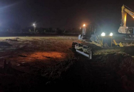 宿徐產(chǎn)業(yè)園消防站綜合樓基槽夜間墊層澆筑